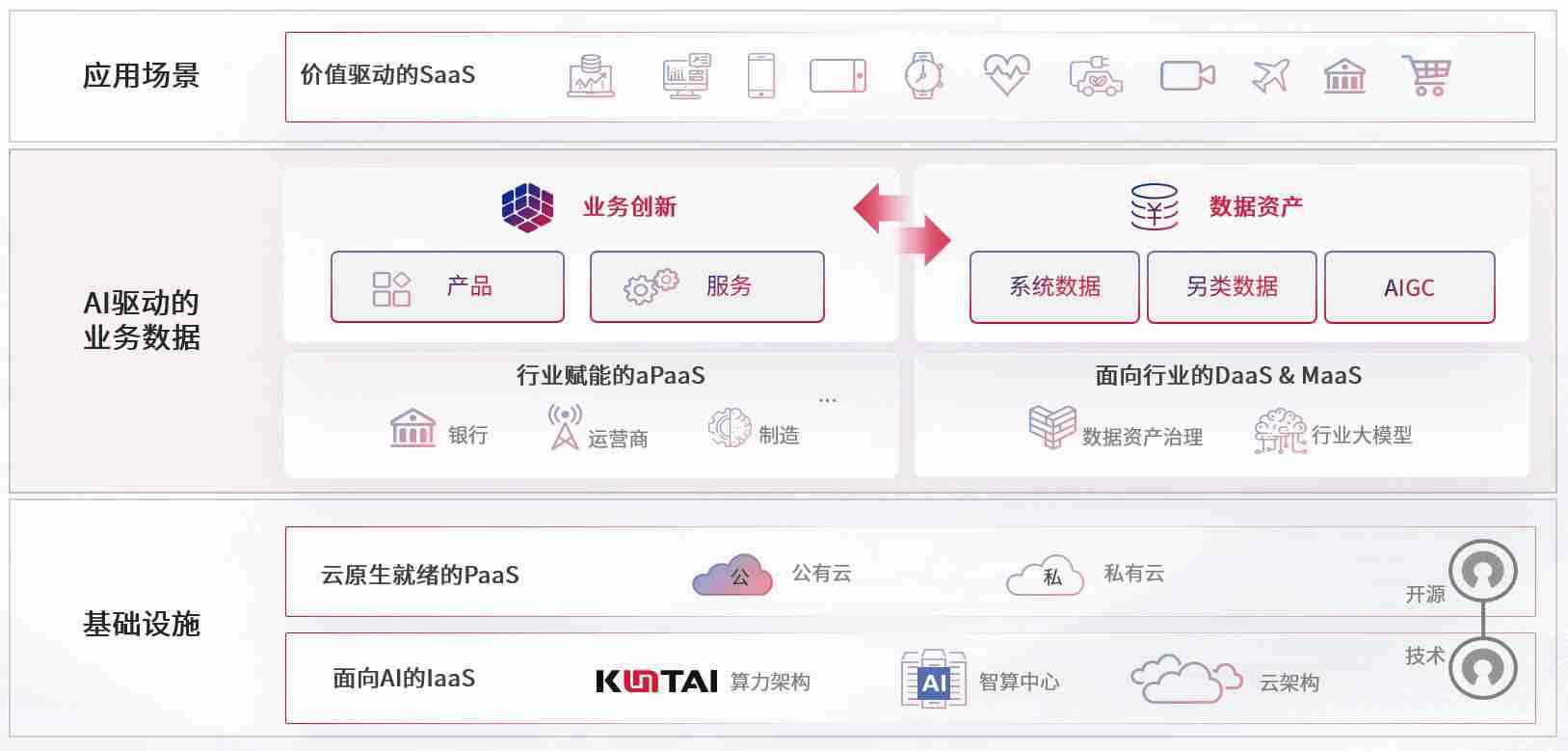 数字时代,,,围绕企业数字化转型的关键要素,,,,尊龙数码开创性的提出数云融合战略和技术体系框架,,着力在云原生、、、数字原生、、AI原生和信创产业上架构产品和服务能力,,,,为处在不同数字化转型阶段的快消零售、、、汽车、、金融、、、、医疗、、政企、、教育、、运营商等行业客户提供泛在的敏捷IT能力和融合的数据驱动能力,,构建跨界融合创新的数字业务场景和新业务模式,,,,助力企业级客户建立面向未来的核心能力和竞争优势,,全面推动社会的数字化、、智能化转型升级。。